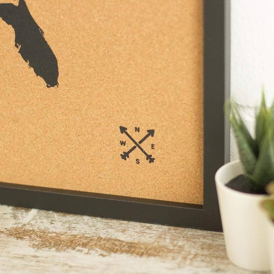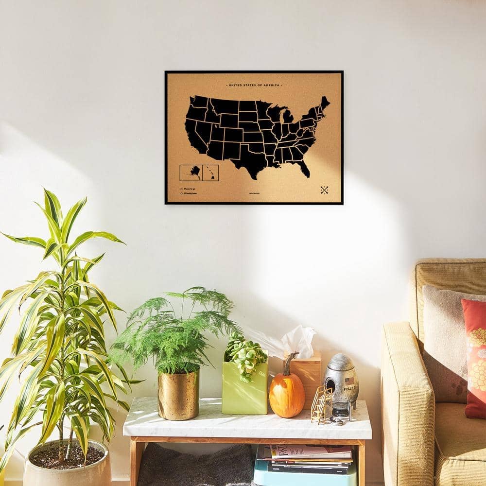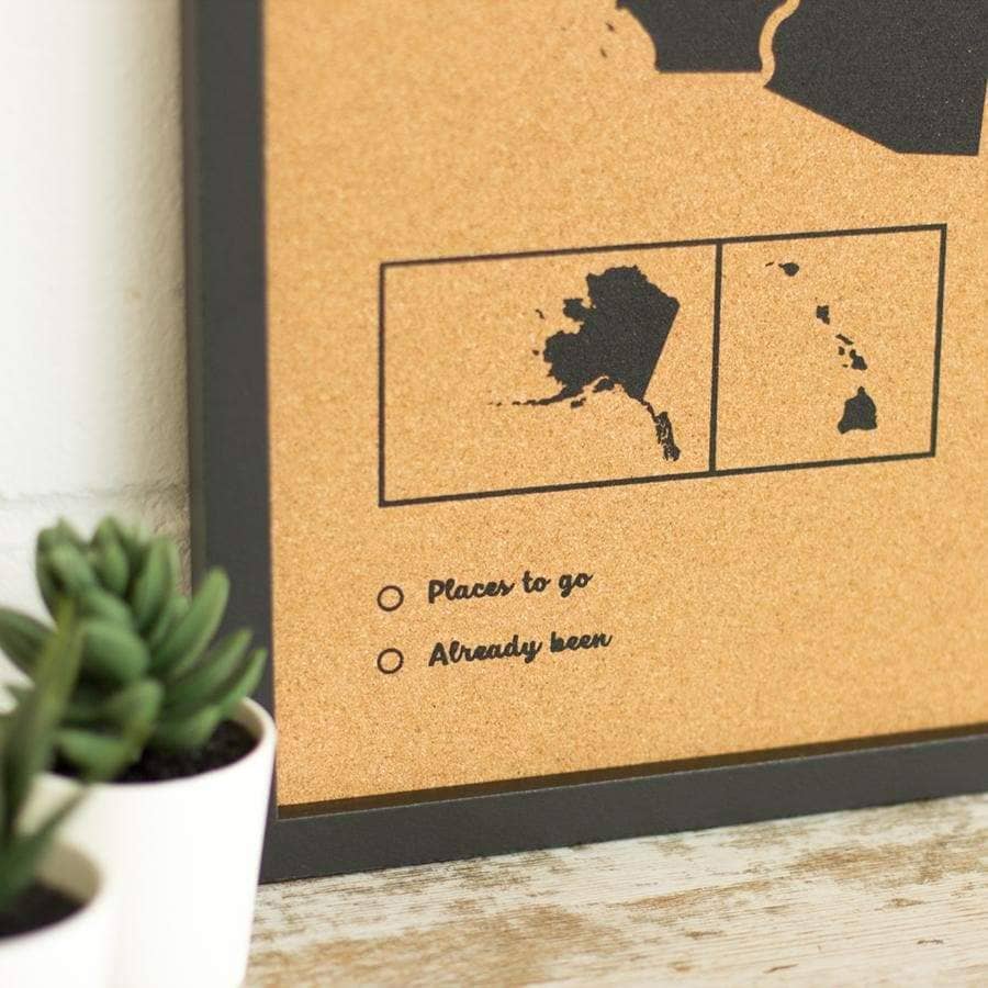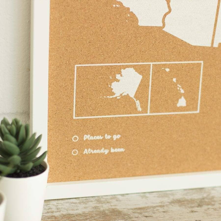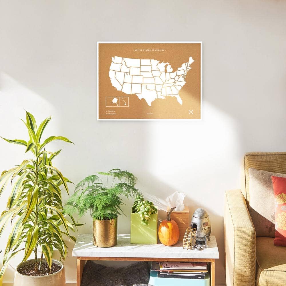 Decora las paredes de tu casa con un cuadro de Estados Unidos de corcho. Elige entre el color blanco o negro para el marco y el diseño y piensa un lugar de tu casa donde los vas a colgar. ¿Lo tienes? Ahora ya solo queda pinchar las chinchetas que vienen incluidas en el mapa y colgar tus fotos estilo vintage.