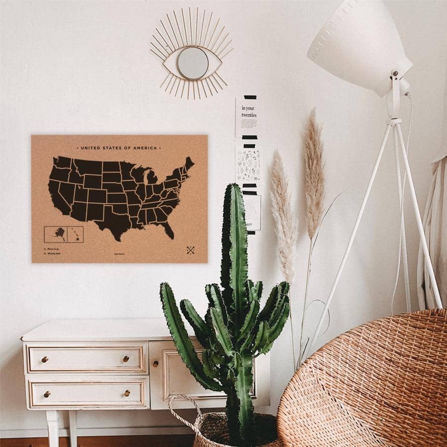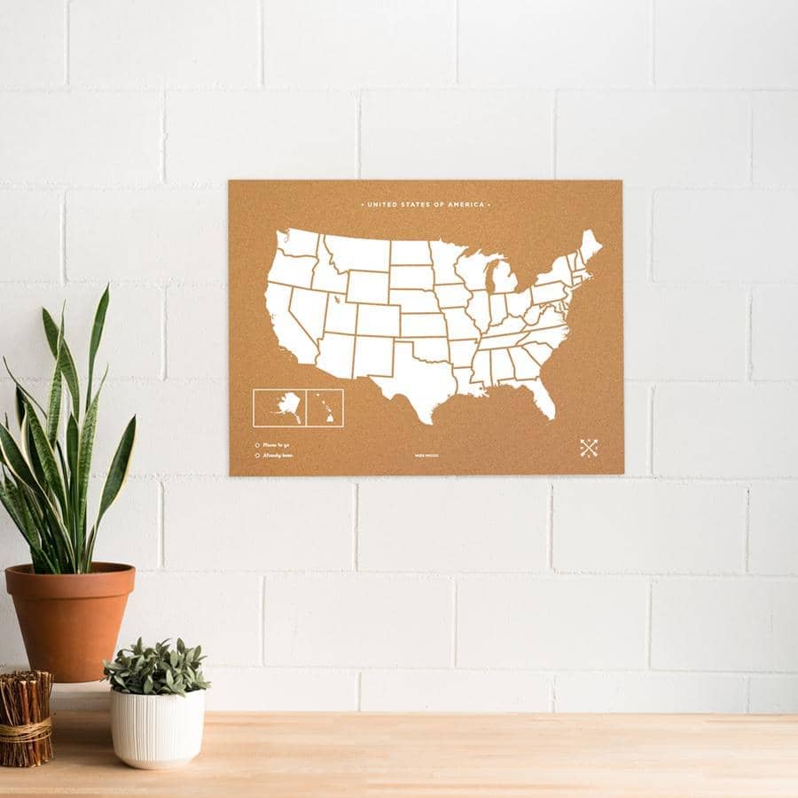 El Woody Map de Estados Unidos es el mapa de corcho perfecto para los amantes de esta ciudad, que les encanta recorrer todos y cada uno de los Estados. En él podrás colgar tus mejores recuerdos y señalar tus lugares favoritos.