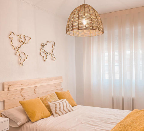 El estilo rústico crea un ambiente relajado, confortable y tradicional que recuerda a la naturaleza. La madera es clave para este tipo de decoración. Añade un mapa del mundo de madera hecho a mano para potenciar tu estilo y adornar tus paredes.