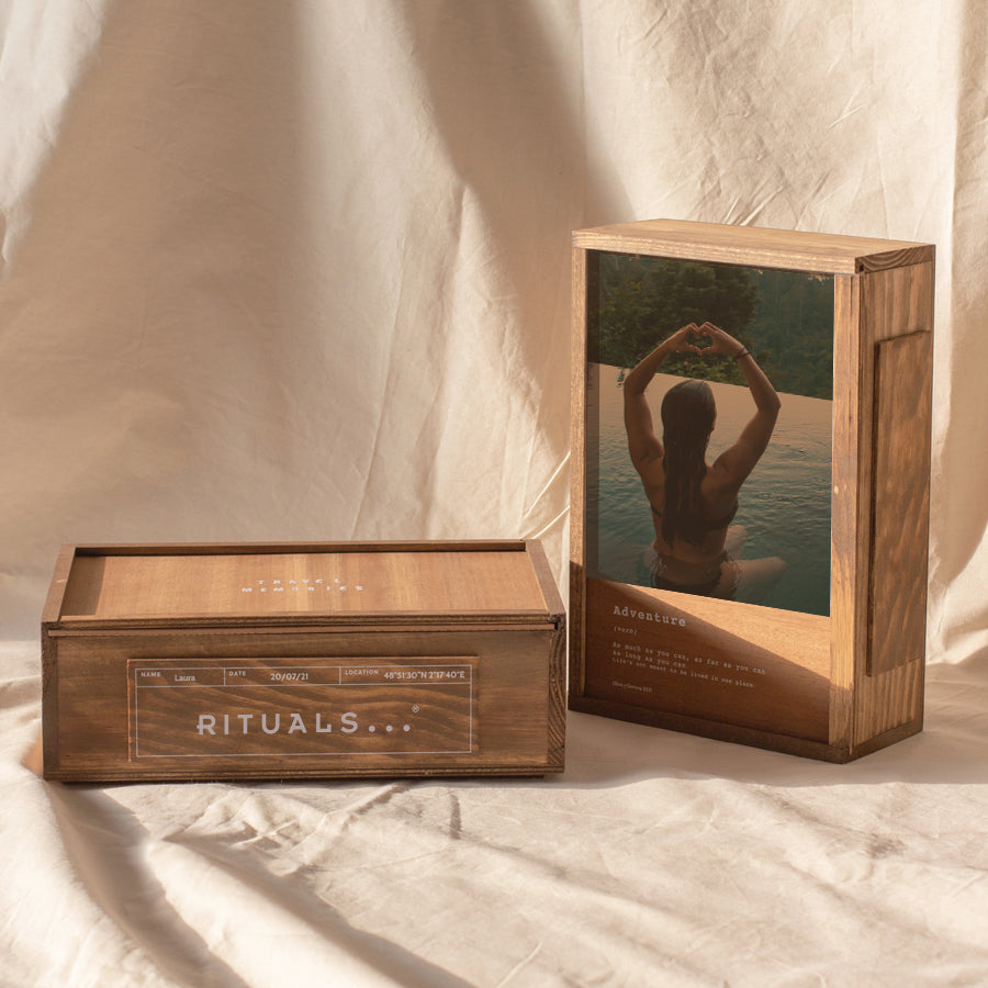 Souvenirs, fotos, monedas, billetes de avión... Con esta caja de recuerdos puedes organizarlos y reunirlos en un mismo lugar. Personaliza la portada con una foto del equipo o el logotipo de la marca.