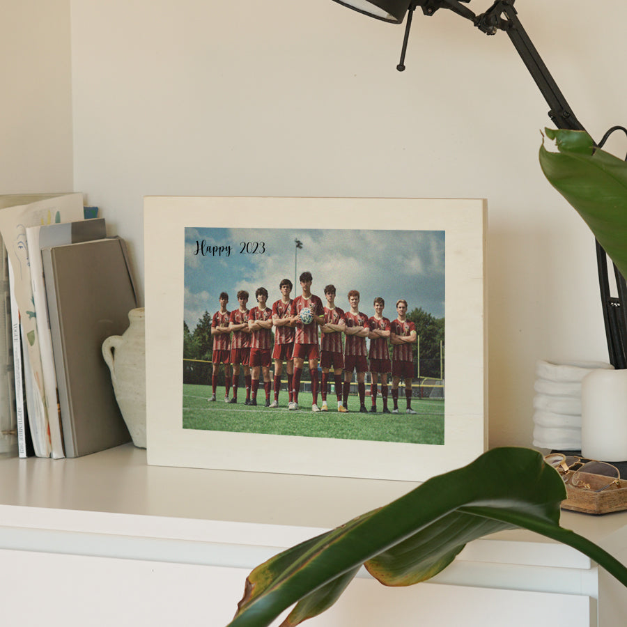 Una fotografía de equipo o el logotipo a todo color es la mejor manera de crear un recuerdo para siempre. Y si esa instantánea está impresa en un material rústico como es la madera, se convertirá en un regalo de gran calidad.