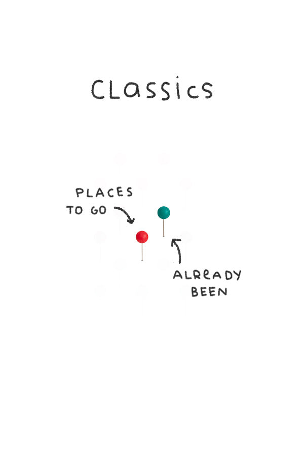 Pink: put a pink pin to mark your next trip. The one that is just around the corner, at your fingertips. The one you will have to change to a green pin once you’re back.