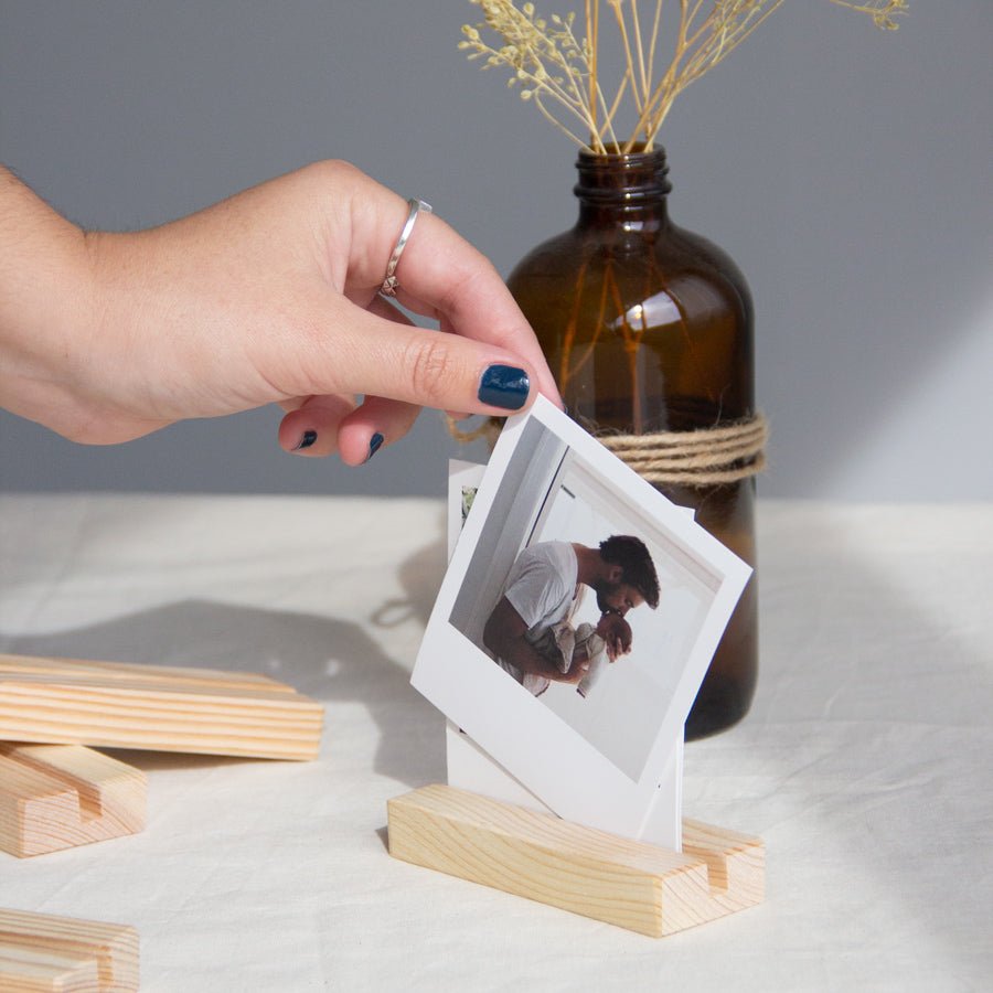 Make your best shots the stars of any room with our wooden stand; perfect for placing photos or postcards while adding a natural touch to your home.