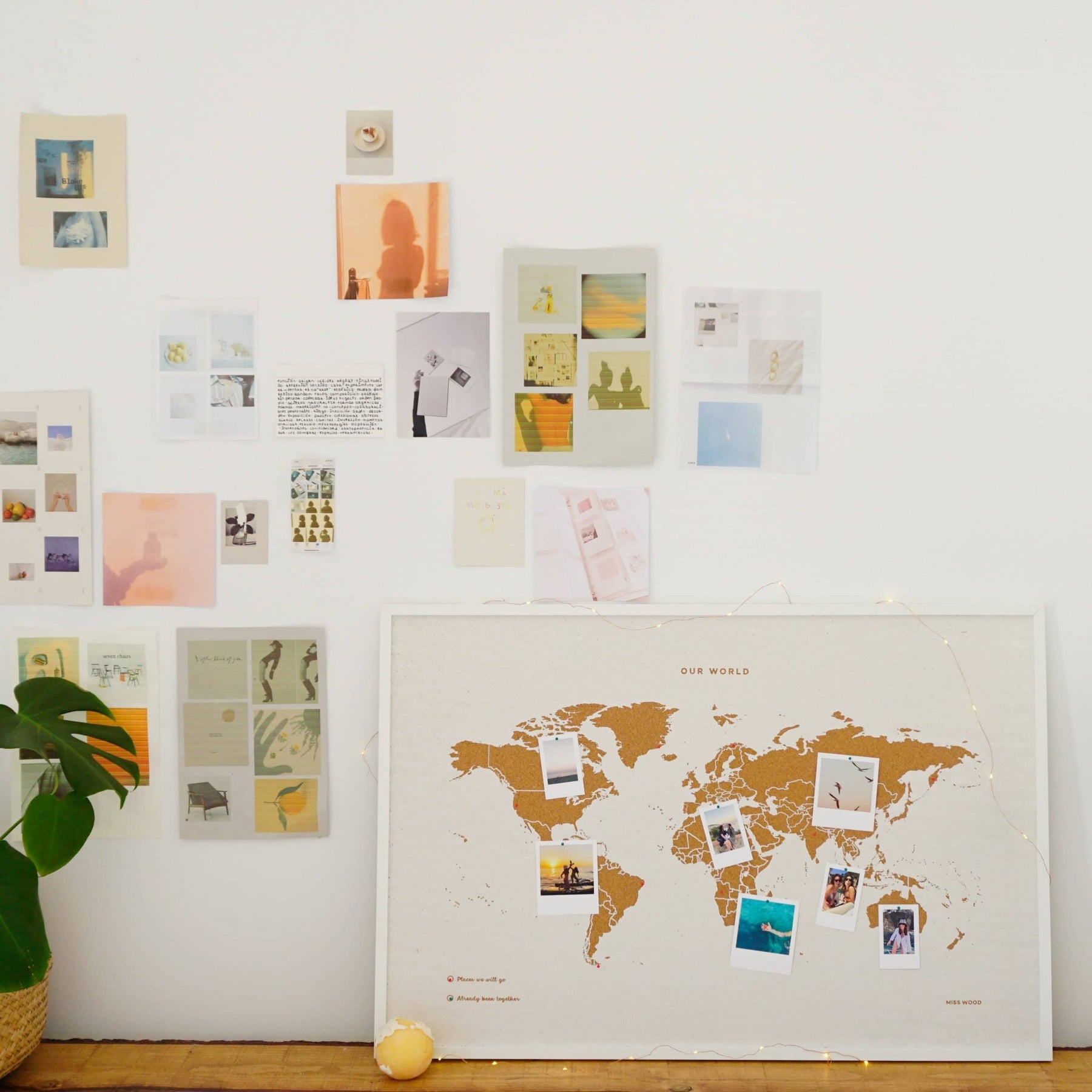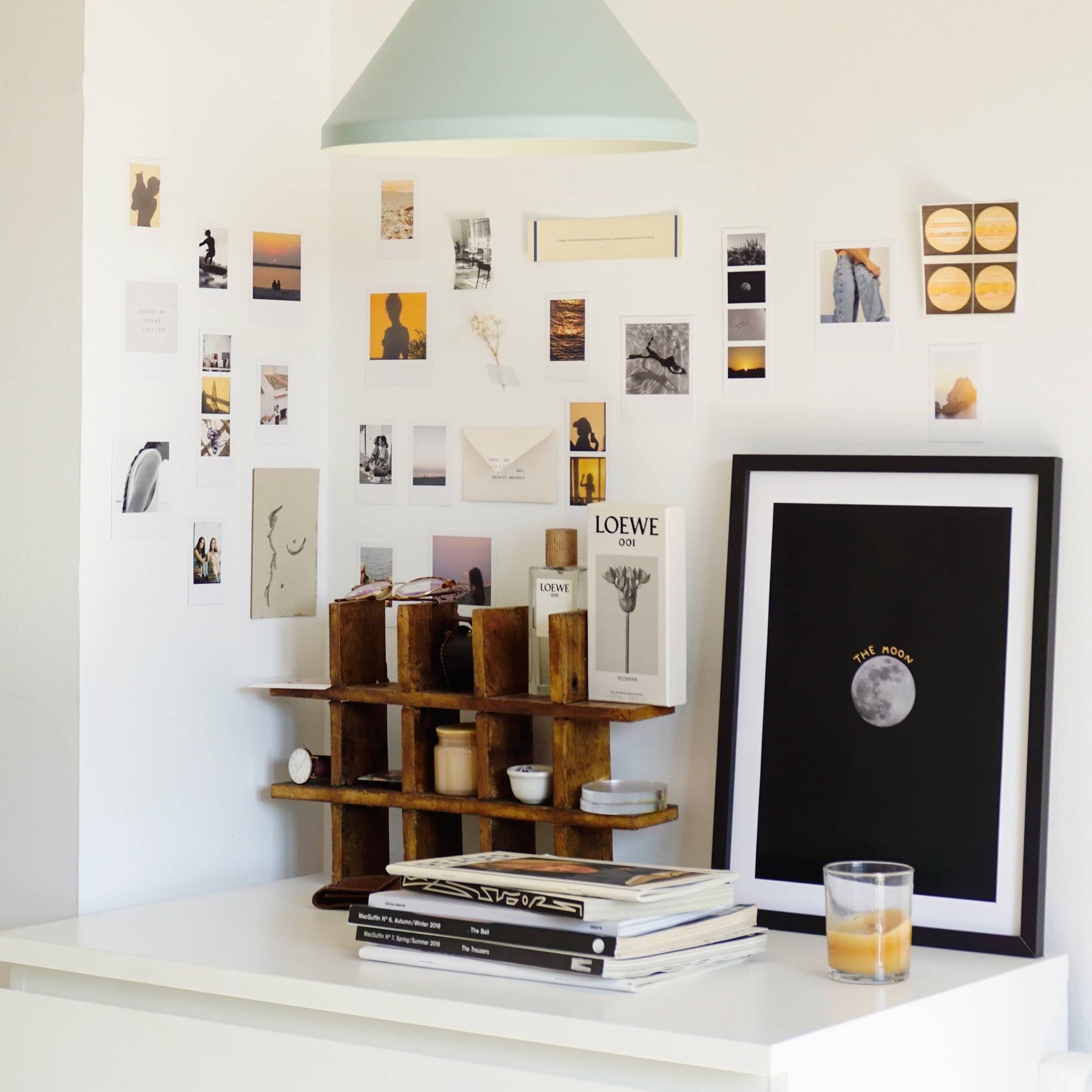 Créez un collage sur le mur avec des autres éléments et des formats de photos différents.