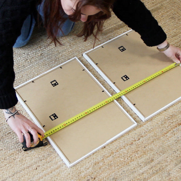 Tout d'abord, nous vous recommandons de créer une disposition sur le sol avec les photos à l'envers, de mesurer les distances entre les crochets. Lorsque vous les déplacez vers le mur, utilisez un niveau pour vous assurer qu'ils sont bien droits. Vous trouverez Ici toutes les étapes nécessaires pour le faire de manière optimale.