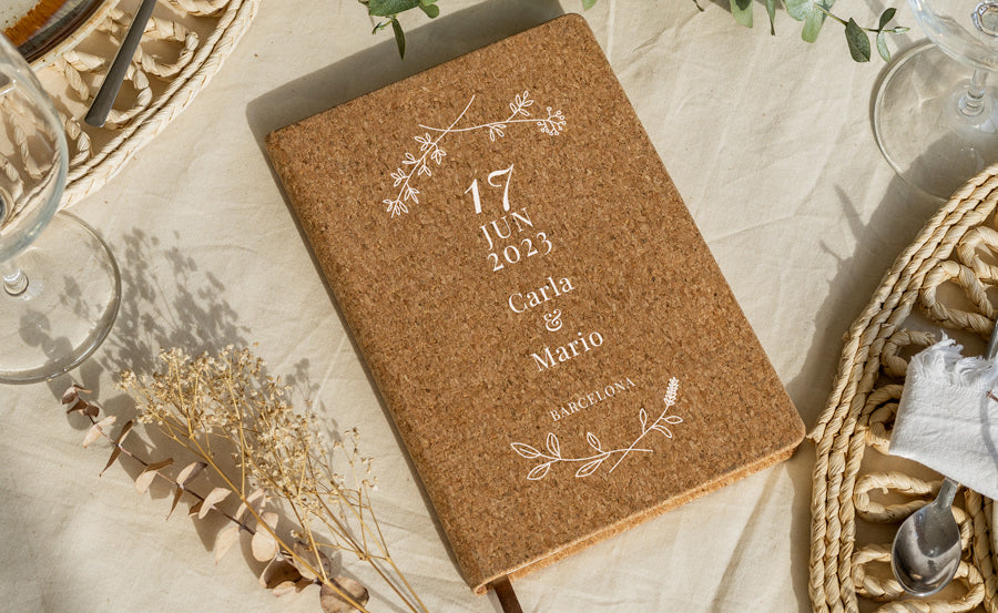 Un cadeau qui accompagnera vos invités dans leurs nouvelles aventures, le carnet en liège personnalisé au format A5 ou A6. Choisissez une couverture créative ou laissez-nous vous envoyer des propositions de design et inspirez vos invités à écrire leurs propres histoires et anecdotes les plus incroyables.