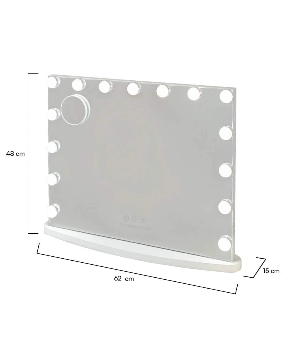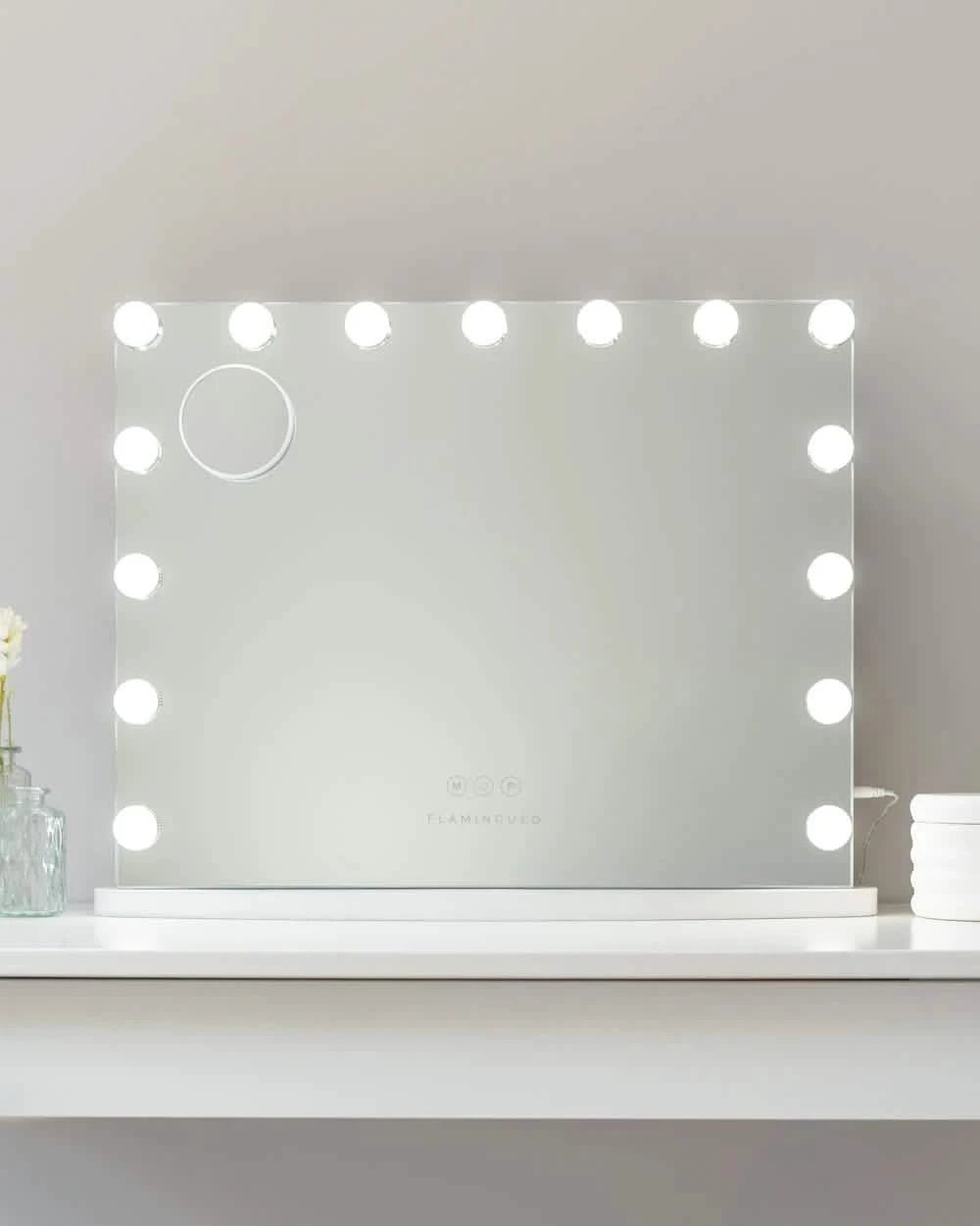 Espejo blanco con 15 luces LED, perfecto para maquillarte o cuidar tu piel con la luz ideal.