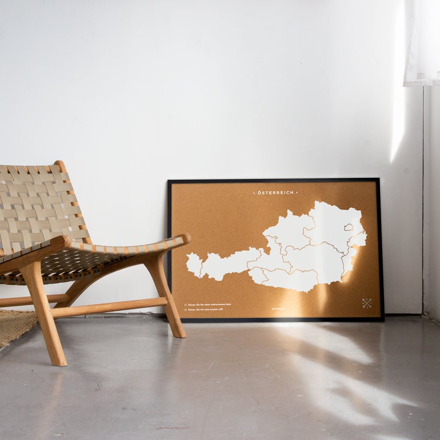 La mappa dell'Austria è ideale per ricordare tutti i tuoi viaggi nel paese dell'Impero Asburgico. Un quadro decorativo in sughero per aggiungere un tocco avventuroso alla tua casa e rivivere le esperienze più belle ogni volta che vuoi.