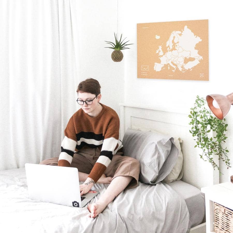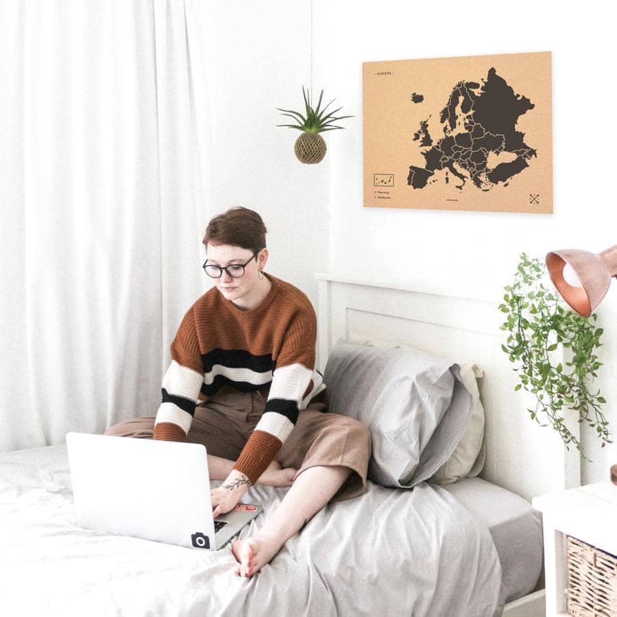 Decora le pareti della tua casa con una mappa dell’Europa in sughero. Scegli tra il bianco o nero per la cornice e il design e pensa in quale stanza ti piacerebbe appenderla. Lo sai? Perfetto! Ora, non ti resta che posizionare le puntine incluse nella confezione e aggiungere i tuoi scatti più belli stampati in stile vintage.