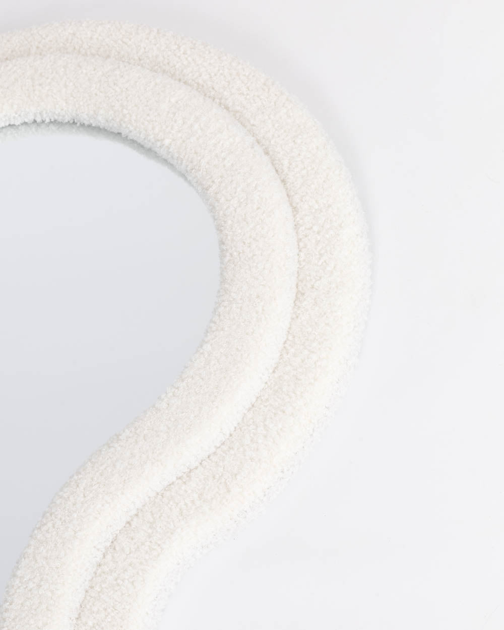 Dale personalidad y calidez a cualquier rincón con este espejo de diseño orgánico y textura suave. Su tejido teddy aporta un toque acogedor y en tendencia, perfecto para cualquier espacio. Puedes apoyarlo en el suelo o colgarlo fácilmente gracias a sus ganchos traseros.