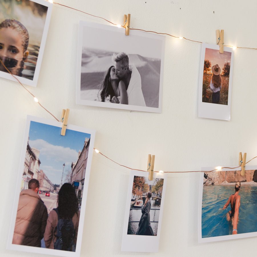 4. Aggiungi una ghirlanda di luci o un supporto in legno per decorare con le tue foto.