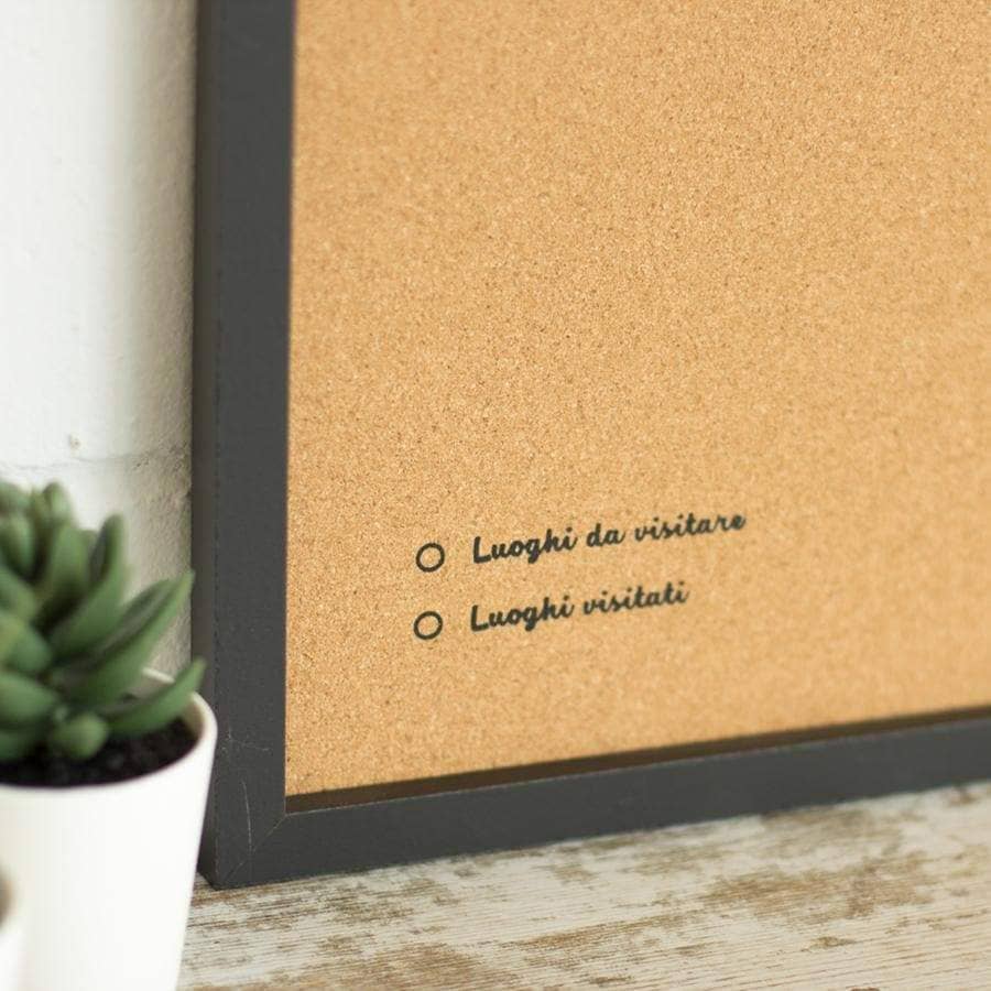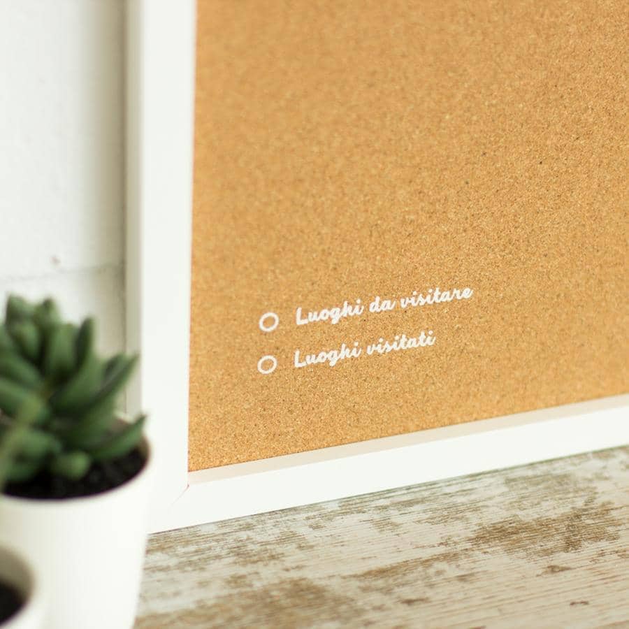 Decora le pareti della tua casa con una mappa dell’Italia in sughero. Scegli tra il bianco o nero per la cornice e il design e pensa in quale stanza ti piacerebbe appenderla. Lo sai? Perfetto! Ora, non ti resta che posizionare le puntine incluse nella confezione e aggiungere i tuoi scatti più belli stampati in stile vintage.