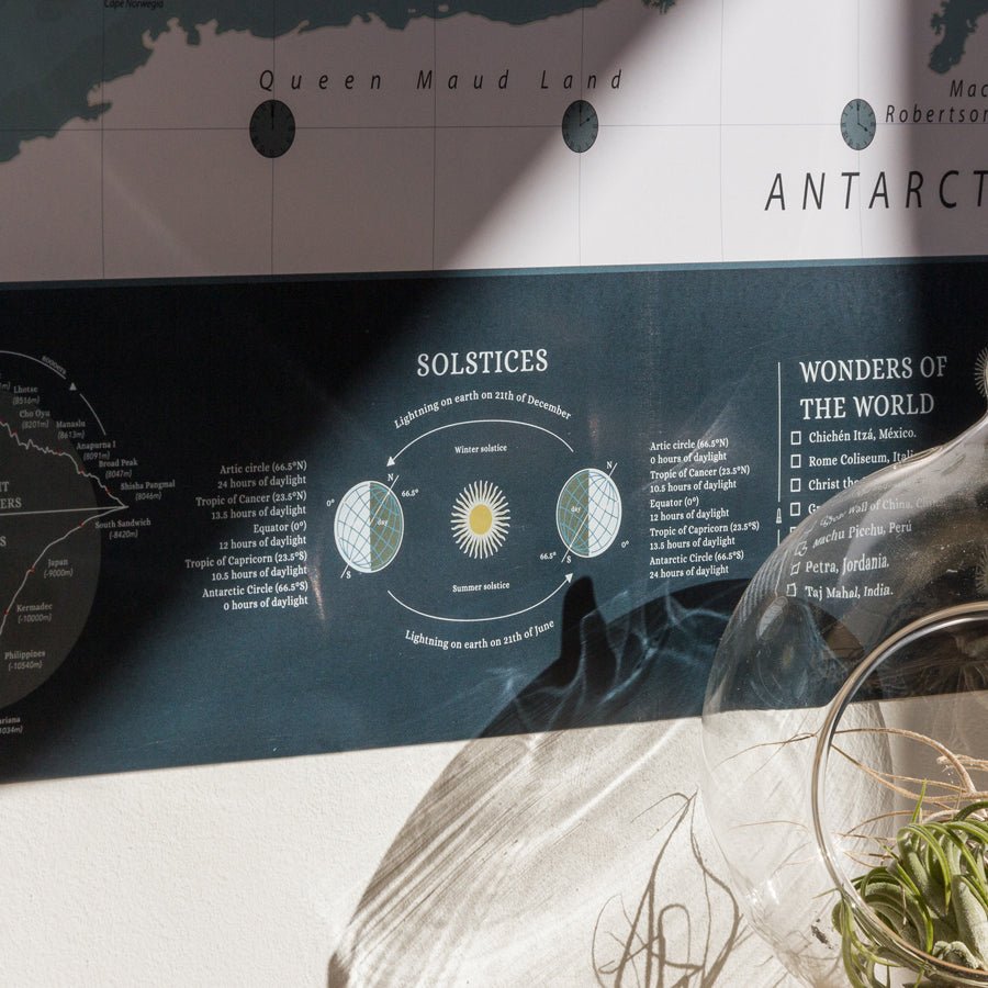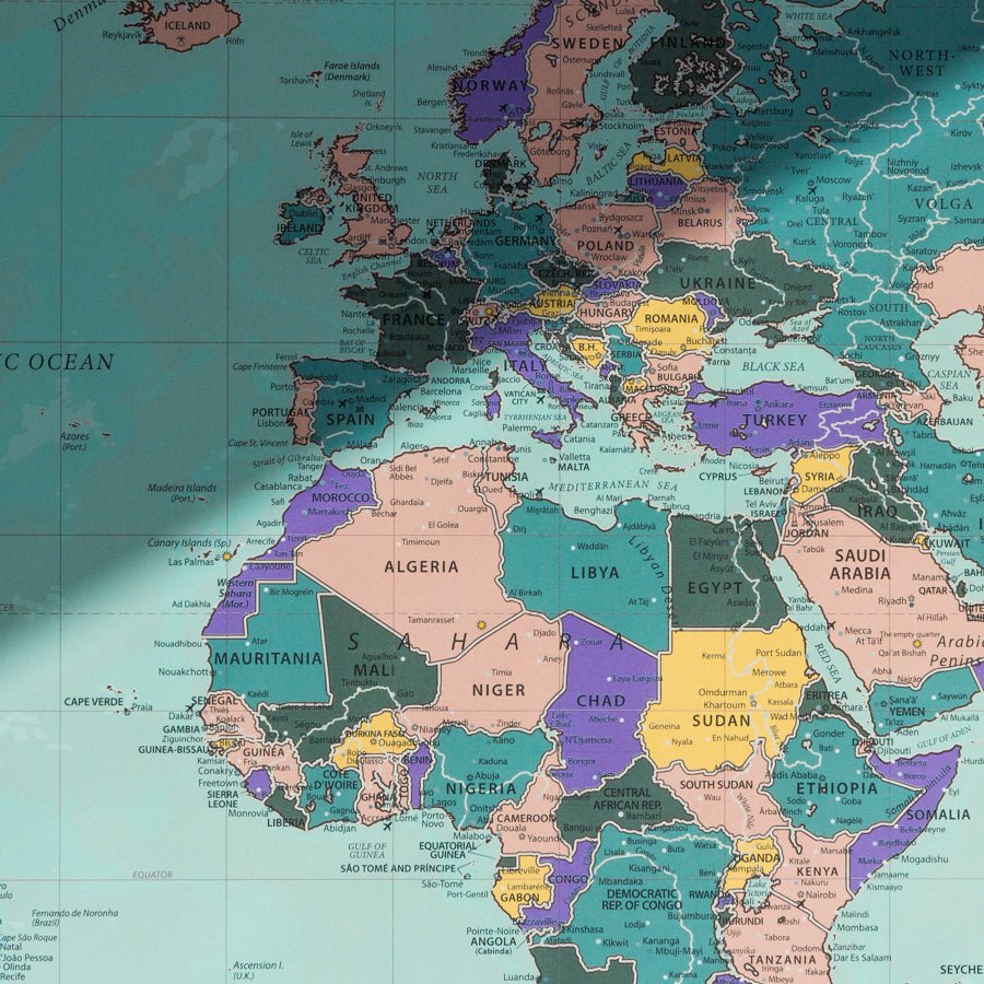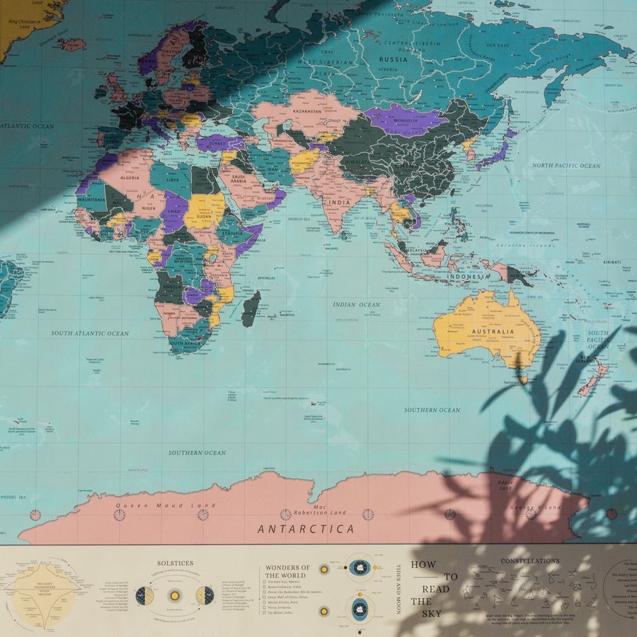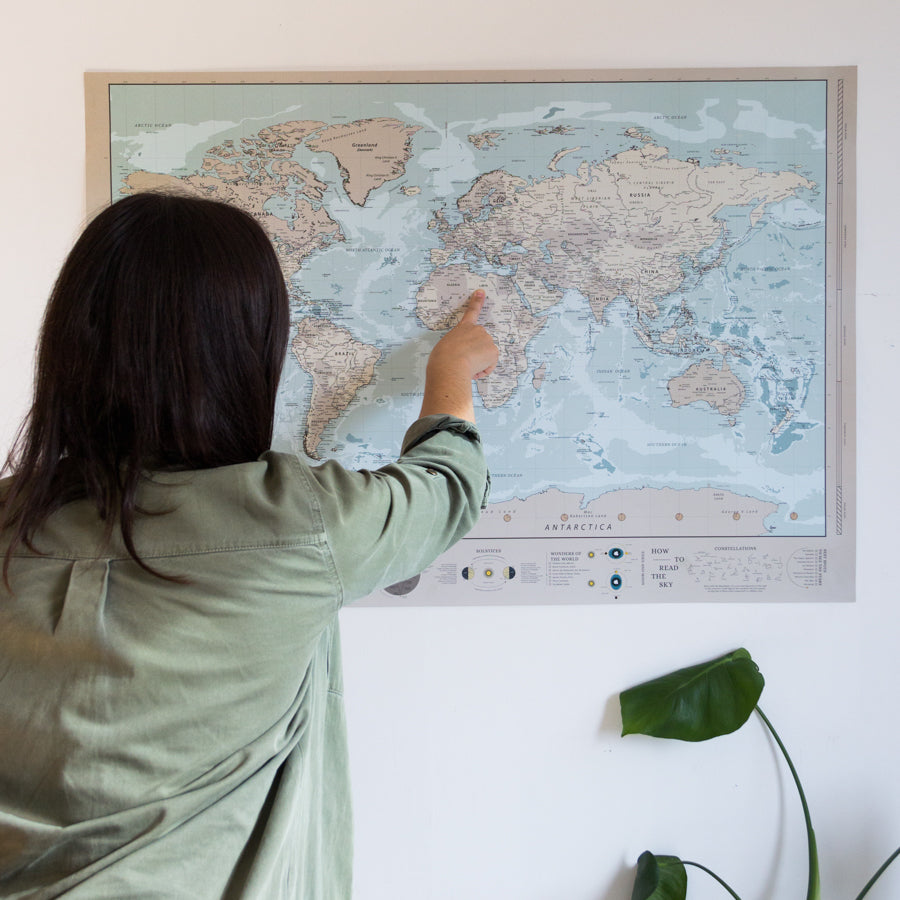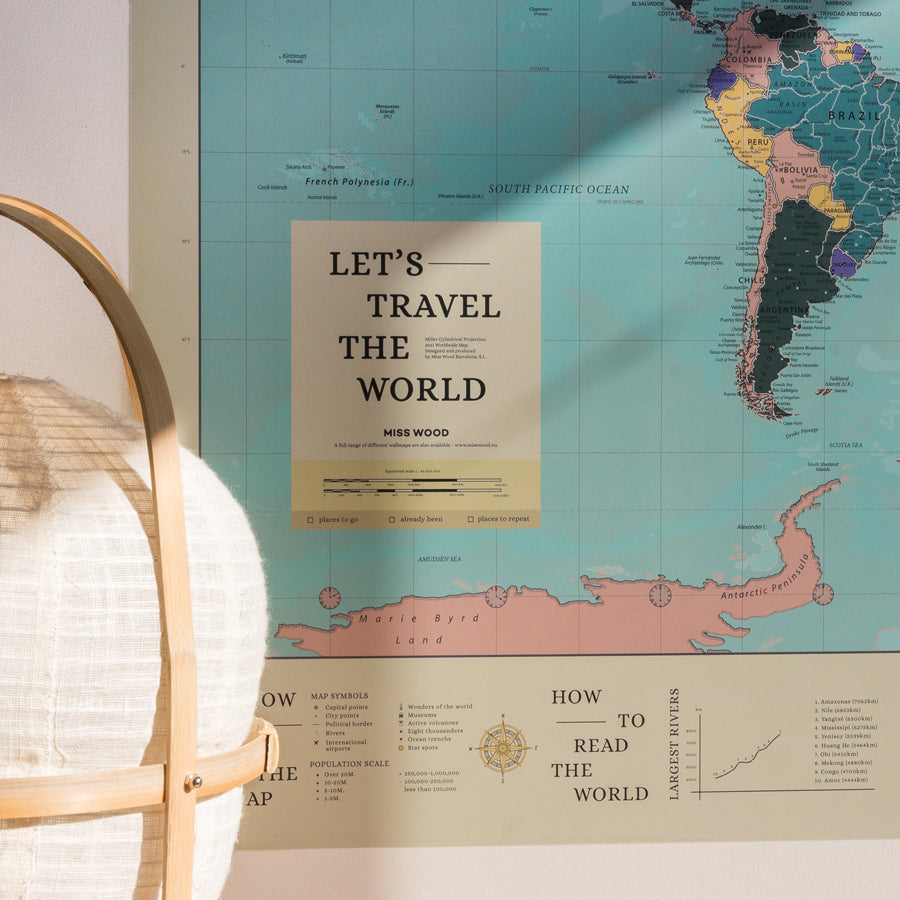 Descubre todo lo que el mundo esconde con este poster mapamundi, que además de darle un toque aventurero a tus paredes, es perfecto para consultar los rincones más recónditos del Planeta.