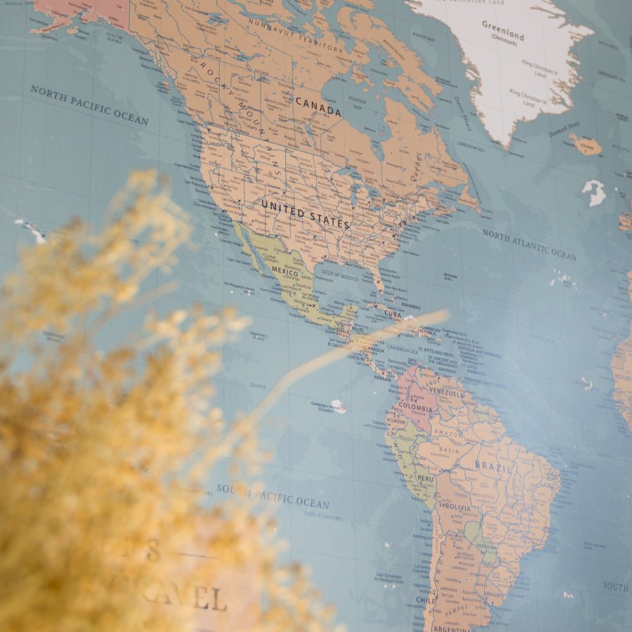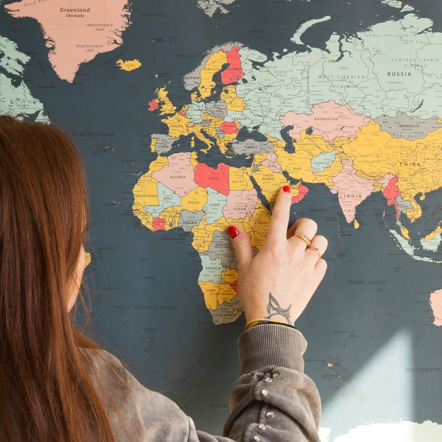 Cada persona tiene su propia personalidad, y lo mismo pasa con este mapamundi en papel. Los colores que hemos incorporado los hacen únicos y con un estilo muy definido. Elige tu diseño favorito y decora las paredes de tu hogar con el mural mapamundi que mejor se adapte a tu decoración. Descubre cuál es tu fotomural mapamundi ideal: